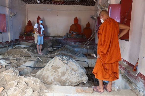 ข้างใต้ลงไปไม่พบอะไรนอกจากเศษอิฐกับศิลา