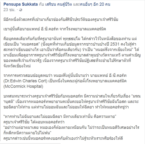 รวมทั้งครูบาศรีวิชัย หมอเจ้าฟ้า กระทั่งหมอคอร์ท และขบวนคริสจักรทางนั้น