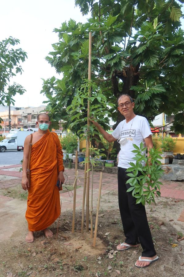 เริ่มจากต้นเบาบาปที่เตรียมไว้ต้นหนึ่ง ซึ่งพรุ่งนี้ท่านจะปลูกใส่วัด