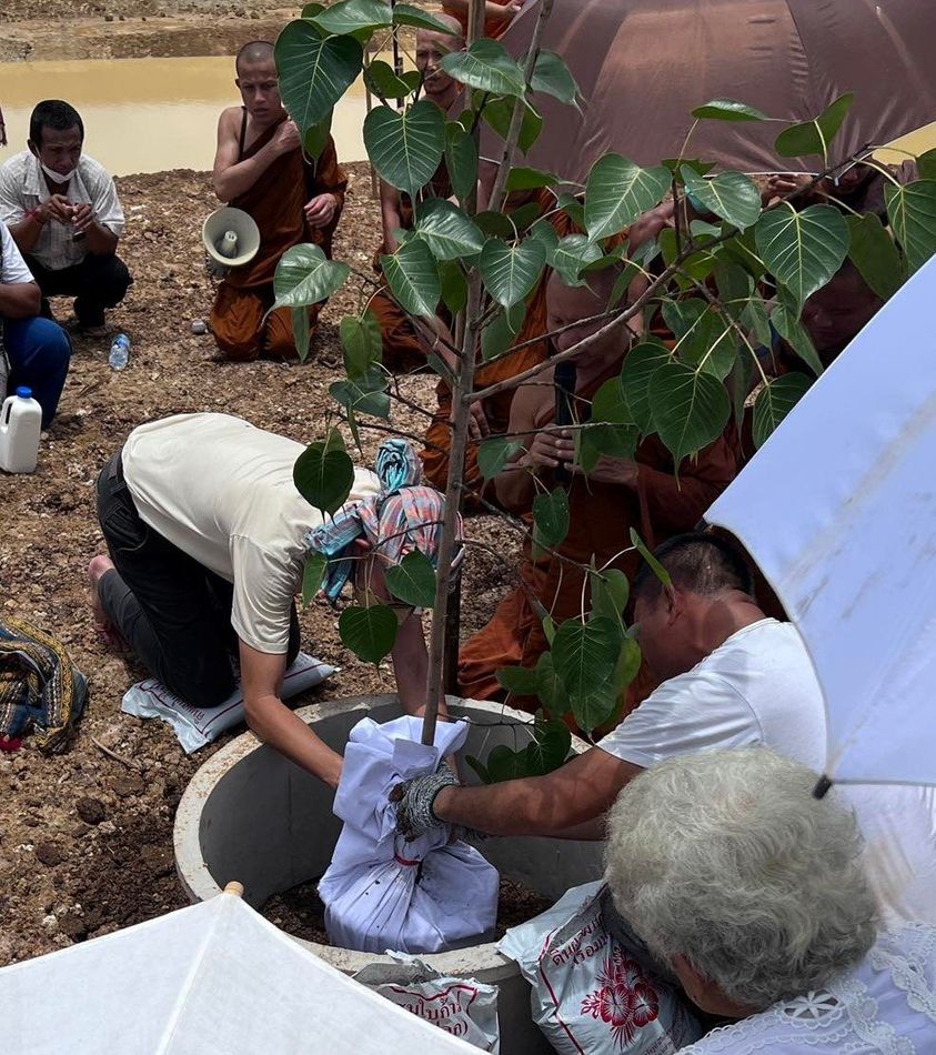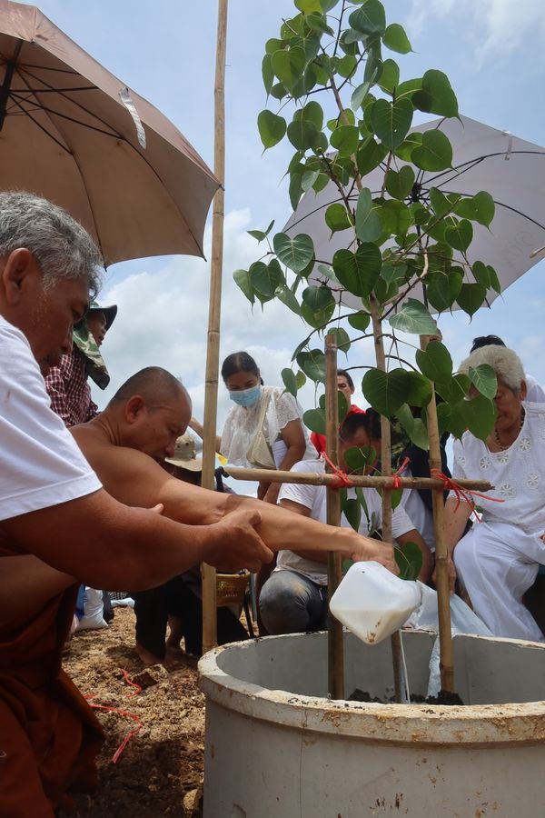 ผมเพียงแก้ผ้าห่อ เอาโพธิ์วาง ปักหลัก ผูกโยง แล้วใส่ดินที่แบกไป