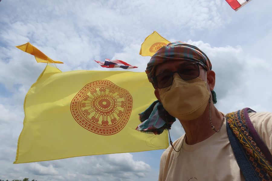 20220823_2 ชูธงธรรมกันกลางทุ่ง กับกอหมายนาที่น่าจะคือที่มาของชื่อไหม ? WithTHeDhammaFlagInTheField, RiceField ?